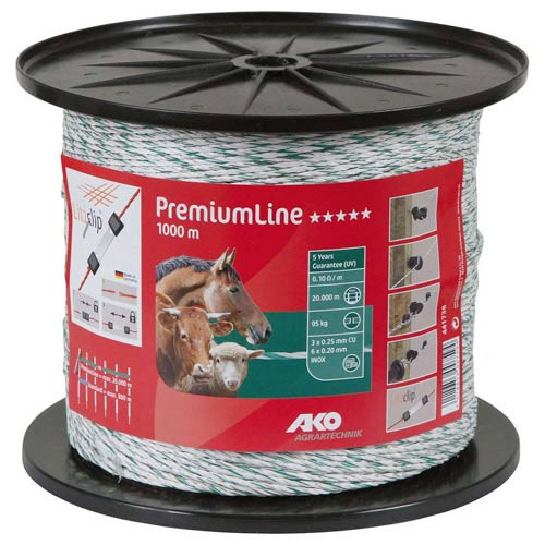AKO Premium Litze garantiert höchste Leitfähigkeit und Hütesicherheit auch bei sehr langen Zäunen!