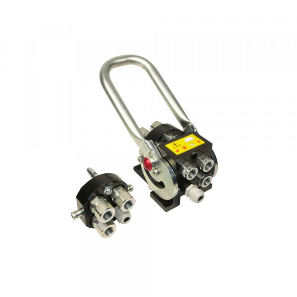 „FASTER“ Schnellverschlusskupplungen ermöglichen ein leichtes Trennen und Verbinden gefüllter Hochdruckleitungen von Hand und in der Regel ohne Werkzeuge. Die geprüfte Qualität garantiert eine niedrige Leckölrate, einfache Handhabung und lange Lebensdauer. Gleichzeitiges Kuppeln von mehreren Hydraulikleitungen und verbinden von Elektroleitungen ist möglich. Ideal für z. B. Frontlader mit mehreren Funktionen. Zusätzliche Verriegelung über Hebelsystem und auch unter Druck kuppelbar. Die Multikupplung ist beidseitig absperrend und das Kuppeln und Entkuppeln ist einfach durch Hebelbetätigung auszuführen.