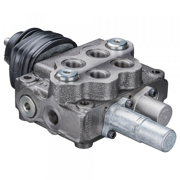 Bei der Bedienvariante handelt es sich um einen Direktaufsatz in Monoblockbauweise. Durch das mit zwei Steuerkolben ausgeführte Wegeventil kann der Durchfluss bestimmt werden, wobei ein einstellbares Überdruckventil zu hohe Drücke vermeidet.