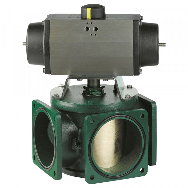 Dreiwegegußschieber - MZ 4" mit pneumatischem Rotationsumschaltzylinder