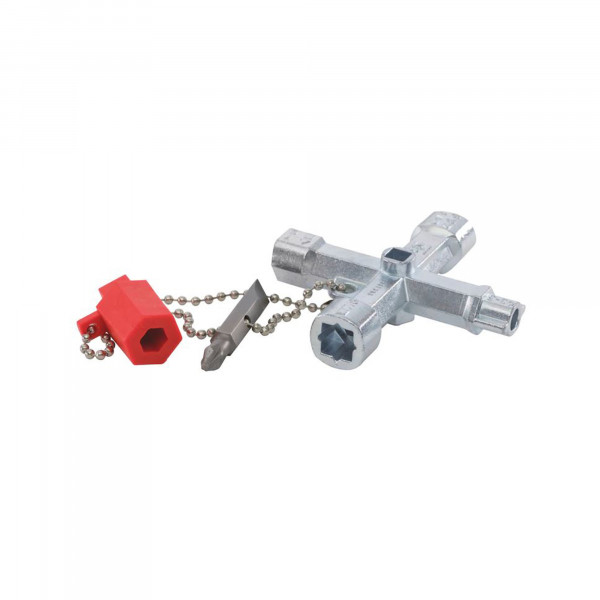 Der Schaltschrankschlüssel Klassiker mit noch mehr Profilen. Inklusive Kette, Adapter und Wendebit PH2 / Schlitz 1,0x7 mm. Mit der neuen Generation Schaltschrankschlüssel können bis zu 12 x Schließungen abgedeckt werden.