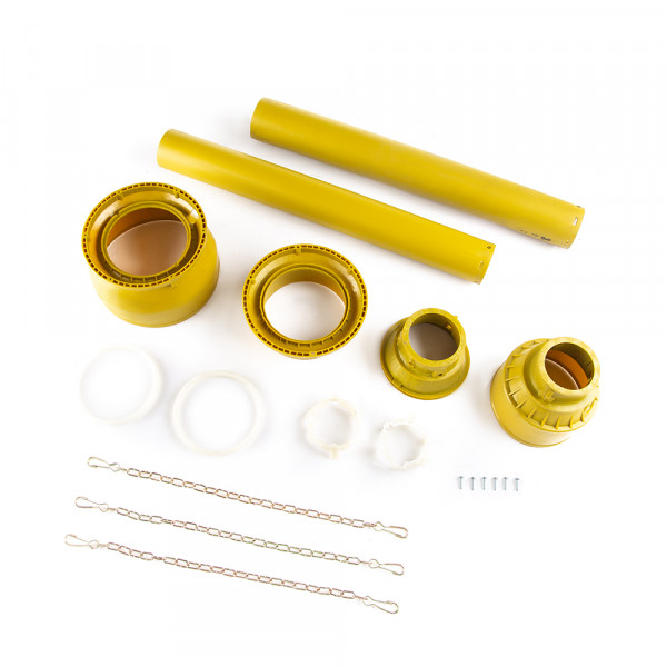 Der Gelenkwellenschutz besteht aus zwei Schutzköpfen, mit dem jeweils dazugehörigen Rohr, und wird am Gleitring eingehakt und festgeschraubt. Der Gleitring wird in die Laufrille der Gabel eingesetzt, und ermöglicht dass sich der Schutz nicht mit der Gelenkwelle mit drehen kann, wenn er durch die Ketten, die am Fahrzeug fest gemacht werden, gehalten wird.